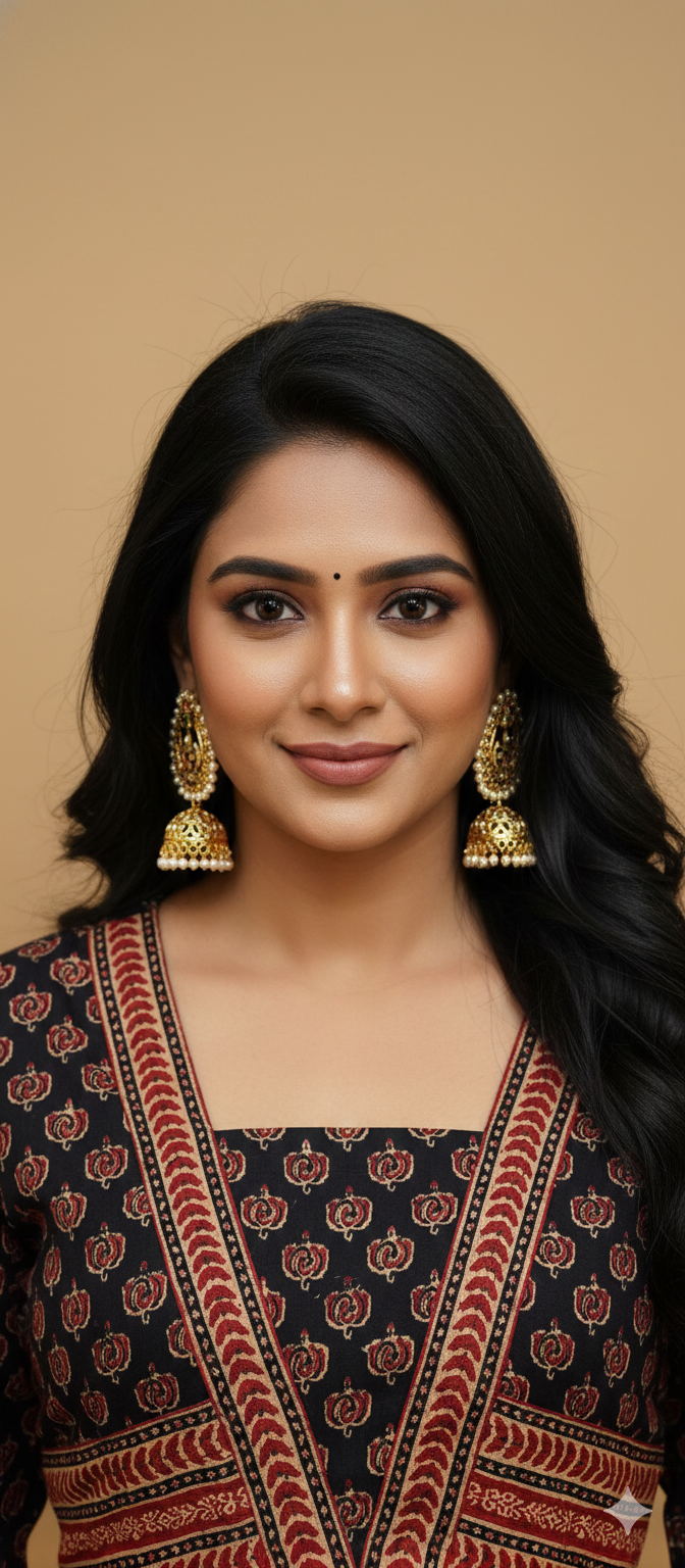 Beautiful Cotton Kurthi adorned with intricate Ajarak prints with V-Neck pattern resembling Aliya Cut. A perfect combination of comfort and traditional elegance, ideal for casual outings or festive occasions.